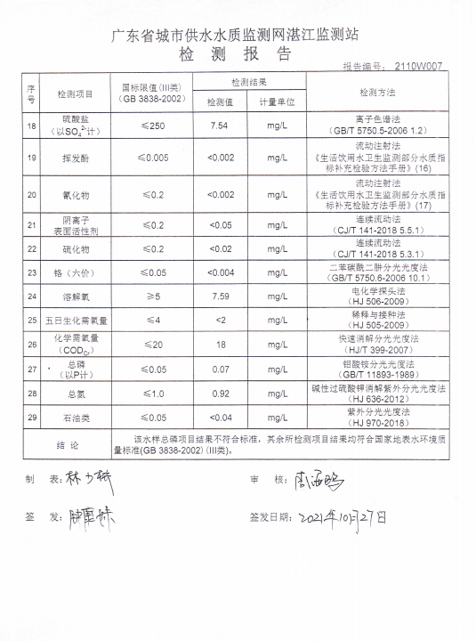 极速飞艇 岭北水厂原水检测报告