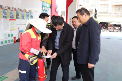随后,陈德一行前往乐民加油站,开展安全生产督导检查,重点对消防安全管理制度落实、设施设备运行、日常安全巡查、隐患自查自纠、应急处置流程等情况进行全面排查,重点核查灭火器、消防栓等器材完好度及有效期。