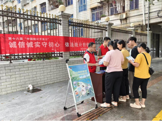 活动现场通过悬挂“诚信诚实守初心,依法统计担使命”宣传条幅,设立统计知识宣传展板,发放新修改《中华人民共和国统计法》、《广东省统计条例》等各类统计法律法规宣传手册,并耐心解答基层统计人员咨询的相关问题,进一步普及统计知识,切实引导基层统计人员走进统计、理解统计、支持统计。