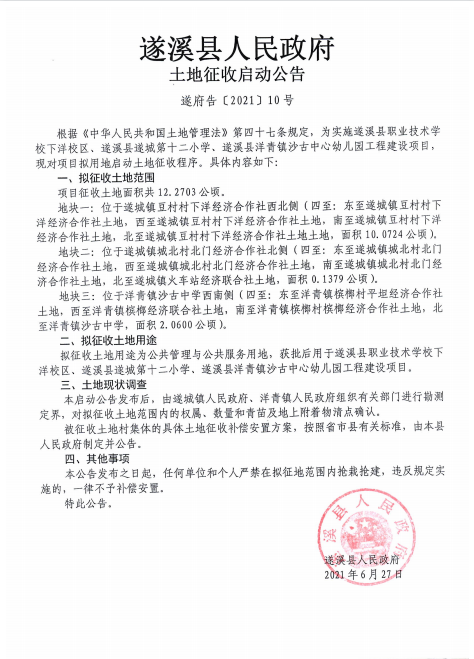 极速飞艇(中国)开奖记录查询站 土地征收启动公告 遂府告﹝2021﹞10号