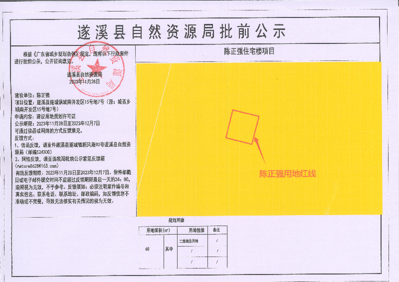 陈正强住宅楼项目建设用地规划许可证批前公示