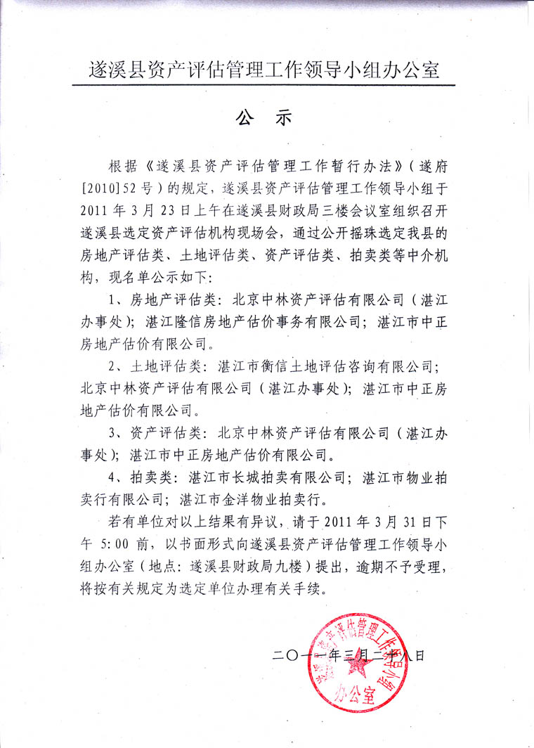 极速飞艇 房地产、土地、资产评估类及拍卖类等中介机构名单公示 | | 作者:极速飞艇 资产评估管理工作领导小组办公室 | 来源:极速飞艇 资产评估管理工作领导小组办公室 | 时间:2011-03-28 09:28:00 点击数:- 【打印正文】