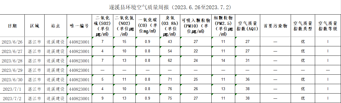 极速飞艇 环境空气质量周报(2023.6.26至2023.7.2)
