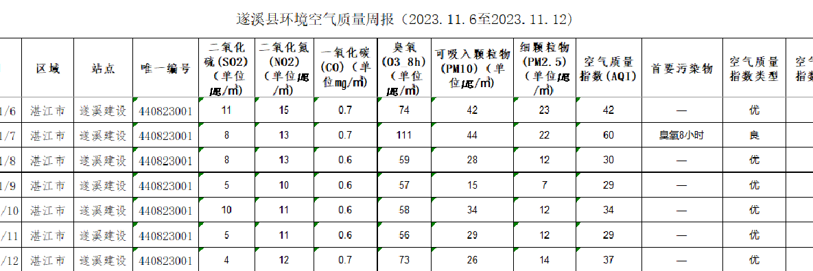 极速飞艇 环境空气质量周报(2023.11.6至2023.11.12) | | 作者: | 来源:湛江市生态环境局极速飞艇 分局 | 时间:2023-11-13 09:27:55 点击数:- 【打印正文】