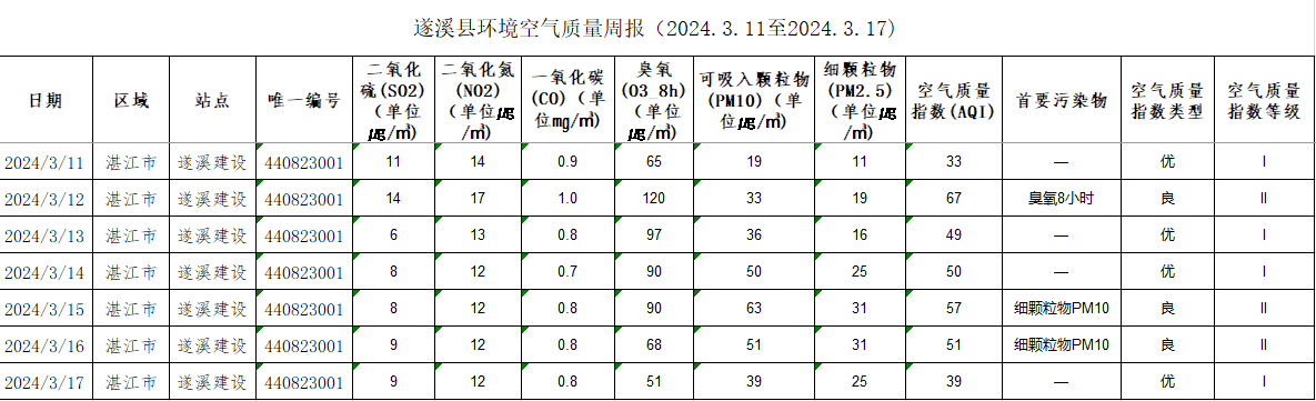 极速飞艇 环境空气质量周报(2024.3.11至2024.3.17) | | 作者: | 来源:湛江市生态环境局极速飞艇 分局 | 时间:2024-03-18 08:30:04 点击数:- 【打印正文】