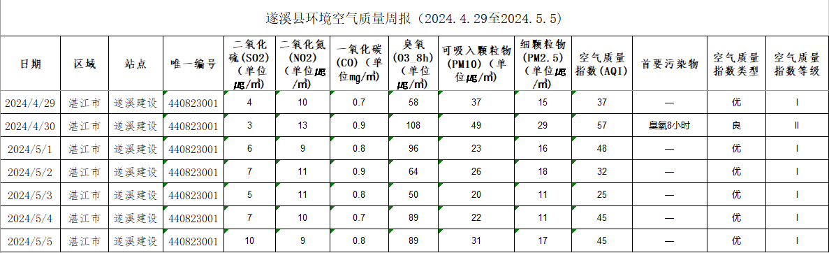 极速飞艇 环境空气质量周报(2024.4.29至2024.5.5)