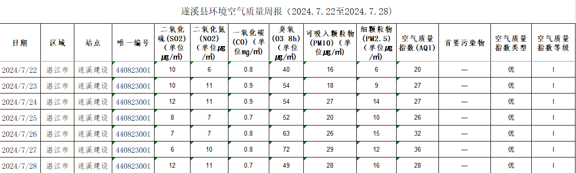 极速飞艇 环境空气质量周报(2024.7.22至2024.7.28) | | 作者: | 来源:湛江市生态环境局极速飞艇 分局 | 时间:2024-07-29 09:43:52 点击数:- 【打印正文】