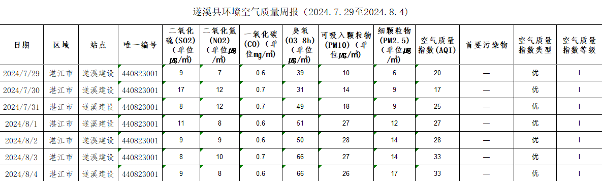 极速飞艇 环境空气质量周报(2024.7.29至2024.8.4)