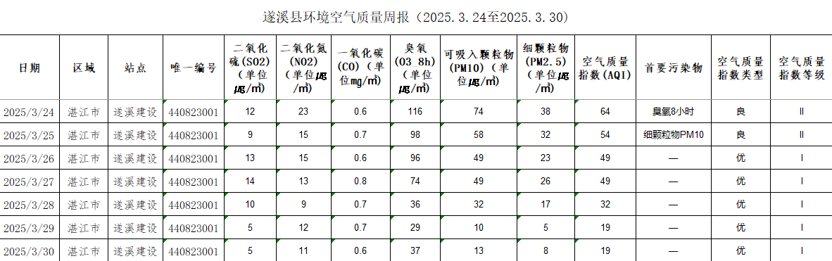极速飞艇 环境空气质量周报(2025.3.24至2025.3.30) | | 作者: | 来源:湛江市生态环境局极速飞艇 分局 | 时间:2025-03-31 11:06:32 点击数:- 【打印正文】