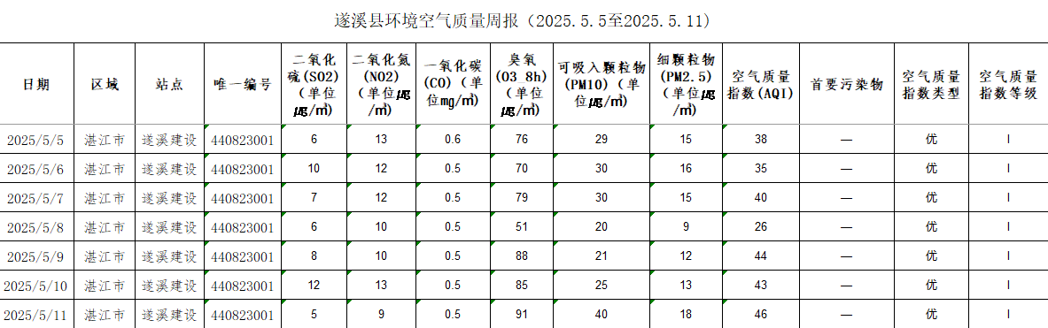极速飞艇 环境空气质量周报(2025.5.5至2025.5.11)