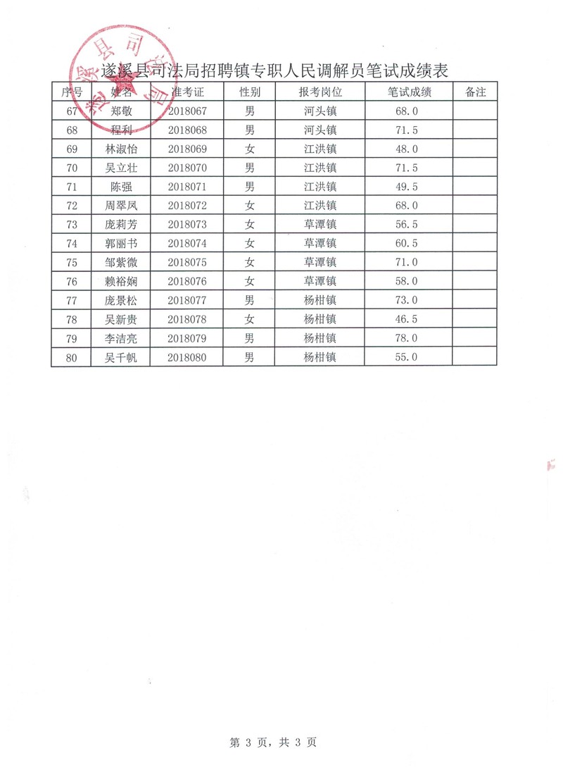 关于极速飞艇 司法局招聘镇专职人民调解员笔试成绩的公告