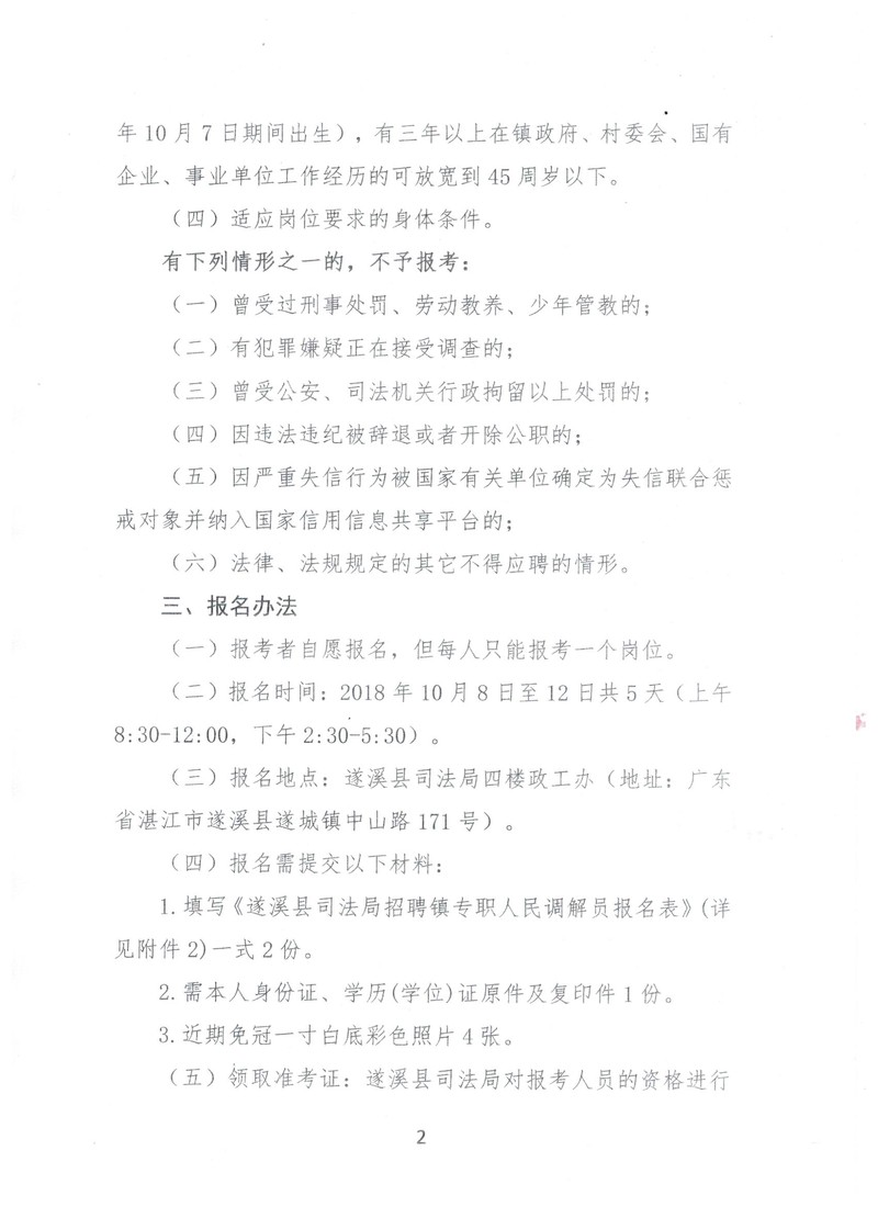 极速飞艇 司法局招聘镇专职人民调解员公告 | | 作者:县司法局 | 来源:县司法局 | 时间:2018-09-17 17:52:26 点击数:- 附件1:极速飞艇 司法局招聘镇专职人民调解员岗位表 附件2:极速飞艇 司法局招聘镇专职人民调解员报名表 【打印正文】