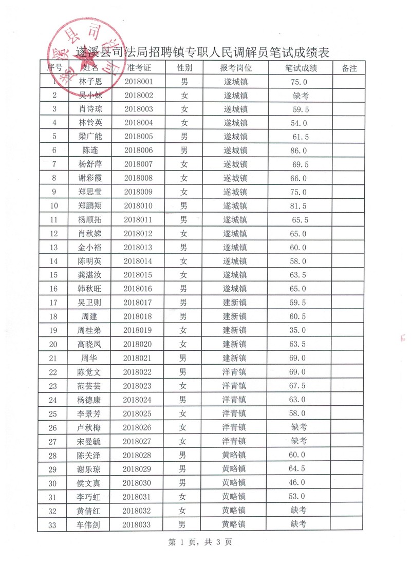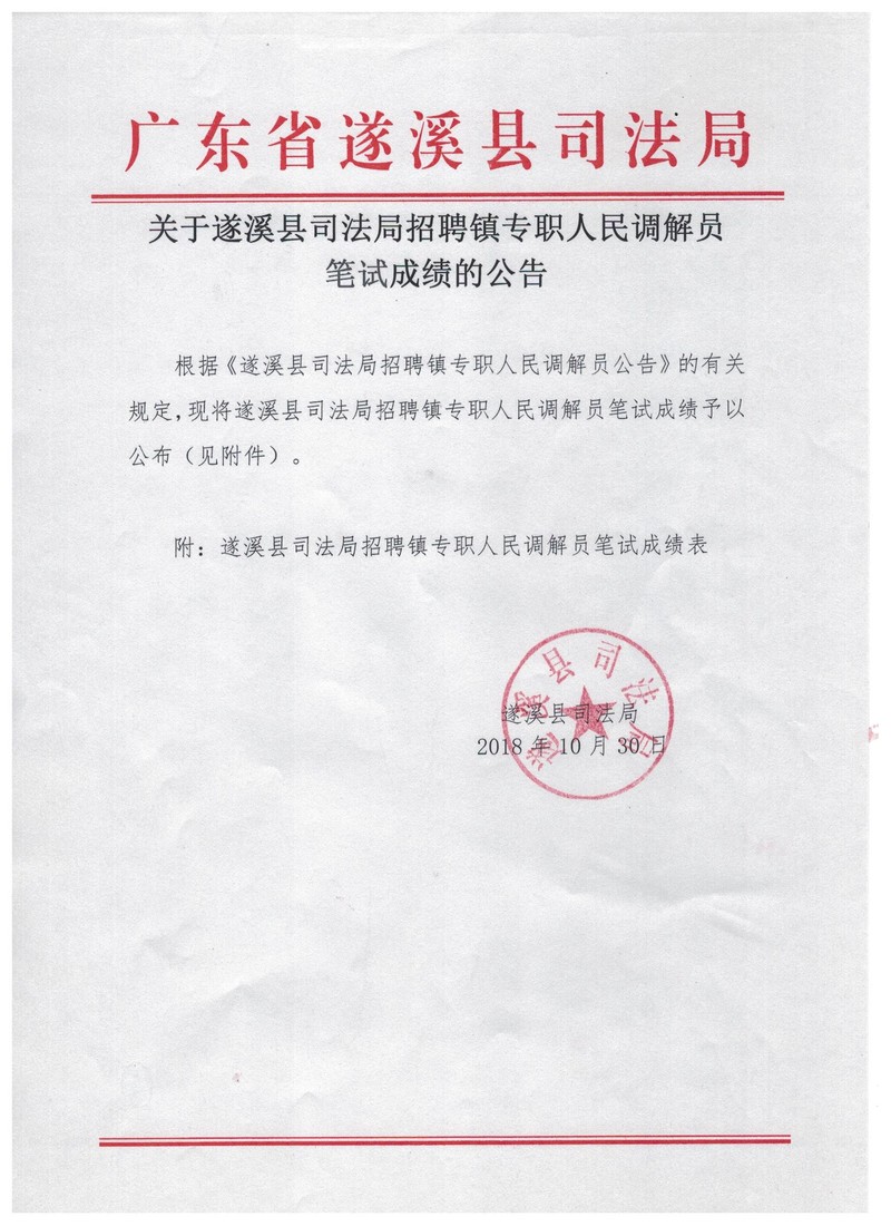 关于极速飞艇 司法局招聘镇专职人民调解员笔试成绩的公告