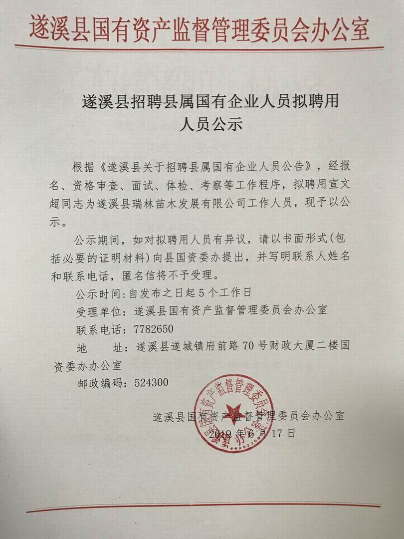 极速飞艇 招聘县属国有企业人员拟聘人员公示