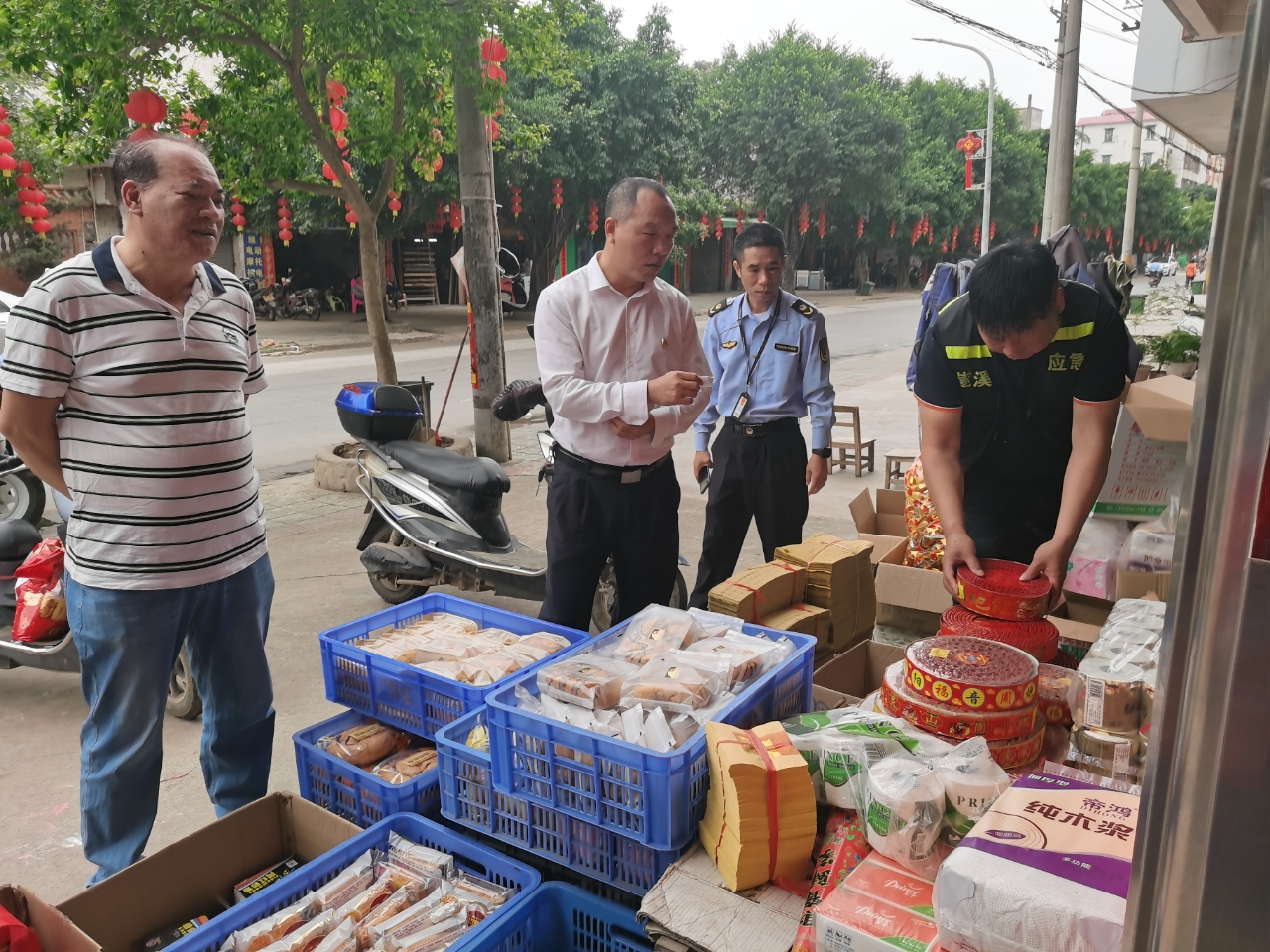 重点领域重点排查!清明节期间为烟花爆竹和纸宝蜡烛购销旺季,为严厉打击非法售卖烟花爆竹行为,认真落实烟花爆竹的储存安全管理,切实做好城月镇清明节期间烟花爆竹和消防安全领域的管控工作,检查组一行对辖区内烟花爆竹零售点进行全覆盖检查,检查店家是否有销售许可证、是否符合“一证一点”、烟花爆竹存放仓库是否符合规定、消防设施是否到位等方面,并对各销售点的烟花爆竹进行登记。并向经销点告知关于销售烟花爆竹的相关规定,严禁超许可范围经营、经营超标违禁产品、仓库超量储存或违规混存,严禁在人群聚集的地点摆摊售卖、燃放烟花爆竹,同时积极宣传非法生产、销售,违规燃放烟花爆竹带来的严重危害,增强烟花爆竹经营业主的安全意识和防范意识。