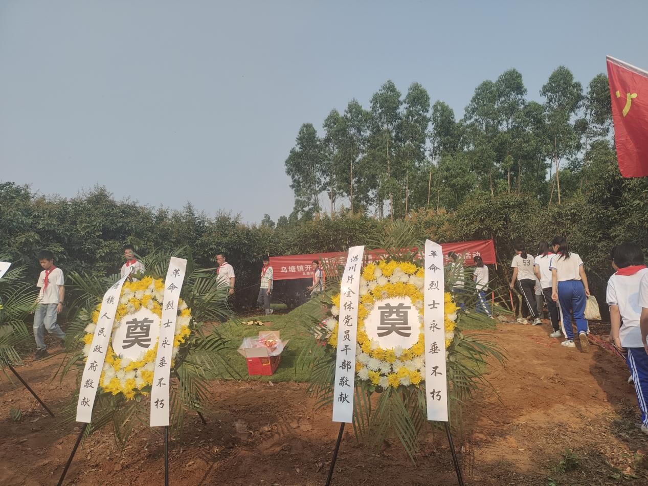 为弘扬英烈精神,传承红色基因,4月2日上午,乌塘镇人民政府、乌塘镇初级中学、乌塘镇中心小学、湛川片各村委联合到湛川荔枝公园开展以“缅怀革命先烈 传承红色基因 ”为主题的“清明祭英烈”国防教育实践活动。乌塘镇全体干部职工、湛川片全体党员干部以及乌塘初级中学、乌塘镇中心小学学生代表等210人参加活动。