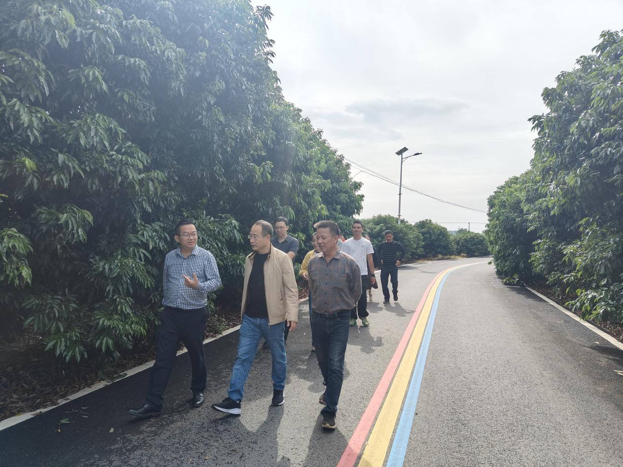 调研组一行首先来到了新屋村的田间地头,实地察看了荔枝种植基地。新屋村地处乌塘镇湛川河谷地带,拥有肥沃的土质和优质的水源,近年来,新屋村以荔枝产业为切入点,推动农文旅融合发展。