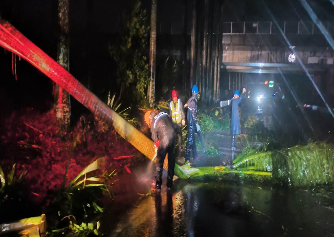 图为应急抢险队连夜开展路障清理工作