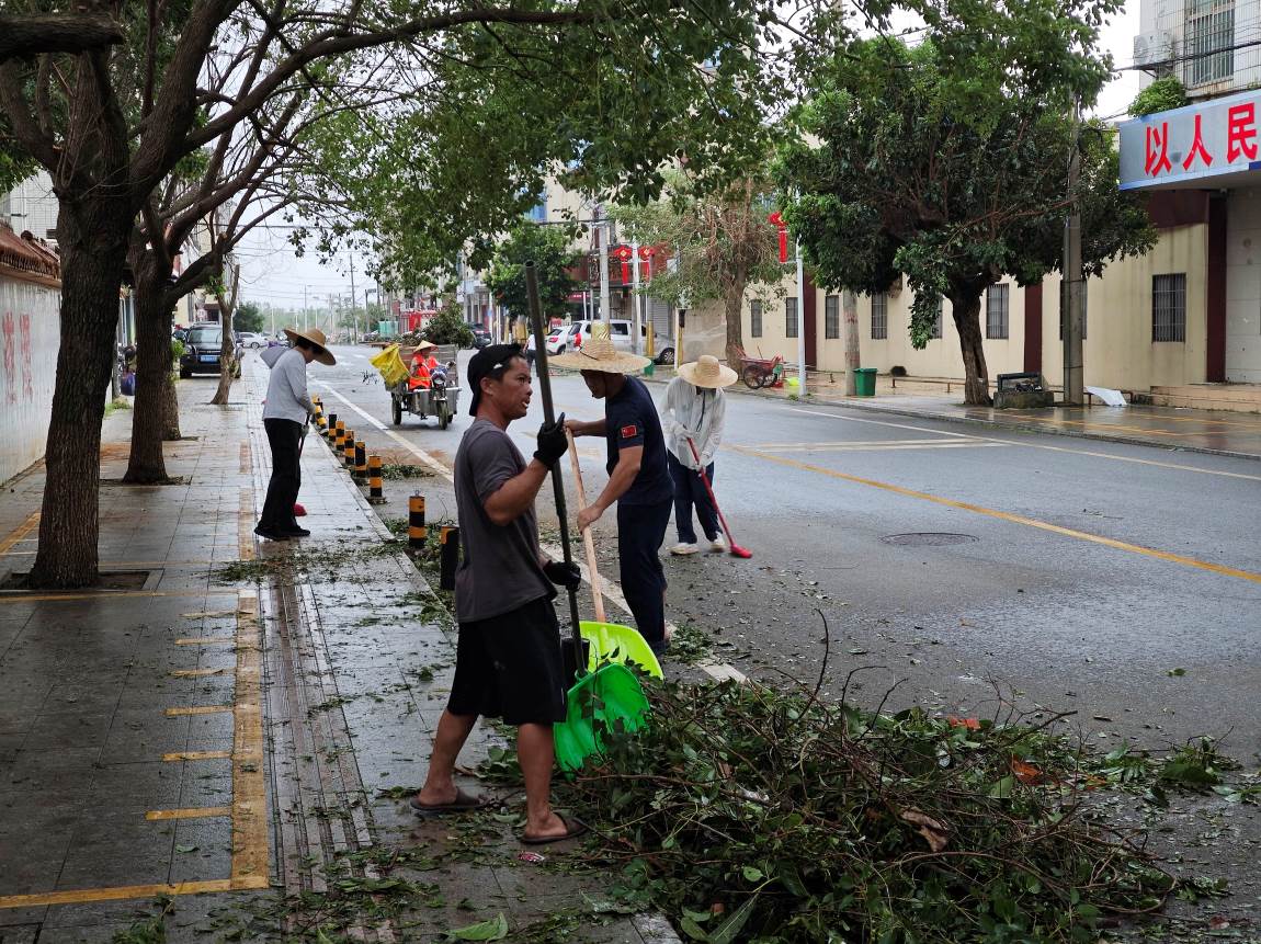 多措并举,分秒必争解民忧。10月6日清晨,镇党委书记陈荣庆集合全镇干部职工,统筹部署灾后恢复重建工作,要求全体干部职工下沉一线,既要扎实推进路面清障、秩序维护等重点工作,更要广泛动员群众主动参与,凝聚“干群同心、共建家园”的强大合力。500余名力量按网格区域精准部署,迅速奔赴镇区各受灾点位开展灾后恢复重建工作。现场统筹调度铲车2台、运输车5辆协同作业,机械轰鸣声与党员干部的呼喊声交织成一片,他们或合力操作油锯截断倒伏树木,或挥锹铲除路面淤泥杂物,或徒手搬运散落枝叶,分工明确、配合默契。针对水电中断的村落,抢险队伍第一时间对接供电、供水部门,争分夺秒排查线路、检修管道,随着第一盏路灯重新亮起、第一股清泉流入水管,受灾群众生活保障正逐步恢复。