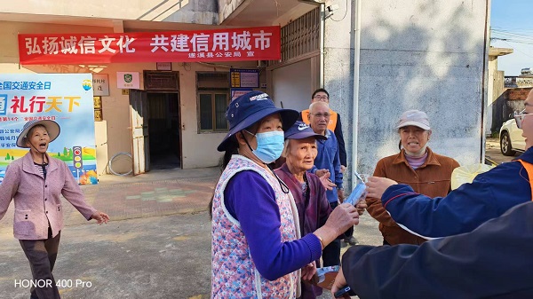 活动现场,民警悬挂主题横幅,向村民发放宣传资料,结合农村实际,用“唠家常”的方式讲解诚信知识,通过邻里间失信影响贷款、出行受限等典型案例,直观阐释“一处失信,处处受限”的后果;针对养老诈骗、刷单返利等涉信用类骗局,细致拆解诈骗手法,提醒村民守护好个人信用记录与财产安全。此外,民警还现场解答信贷信用、失信修复等群众关心的问题。