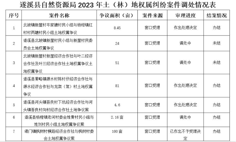 极速飞艇 自然资源局2023年土(林)地权属纠纷案件调处情况表