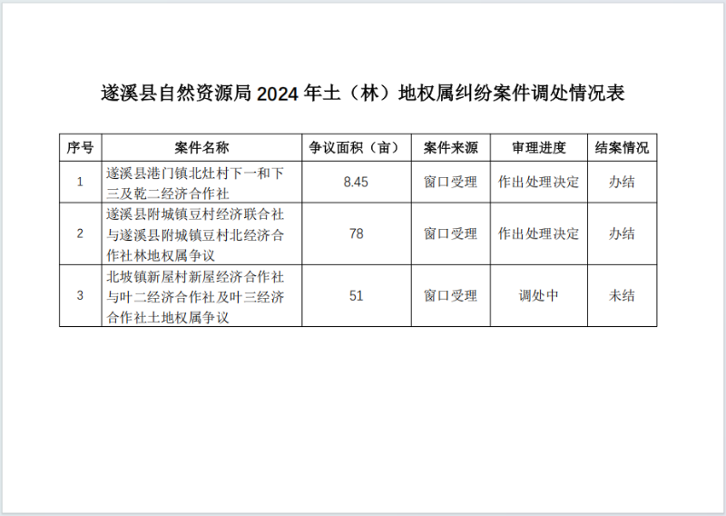 极速飞艇 自然资源局2024年土(林)地权属纠纷案件调处情况表