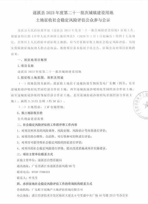 极速飞艇 2023年度第二十一批次城镇建设用地征地社会稳定风险评估公示