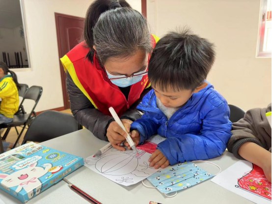 随后,志愿者与孩子们进行绘画创作。孩子们充分发挥各自的想象力,用鲜艳活泼的色彩描绘出他们心中对祖国的定义。一幅幅充满童趣、充满幻想、富有活力的画面跃然纸上,用稚嫩的画笔展示了他们眼中的社会主义核心价值观,活动现场其乐融融。