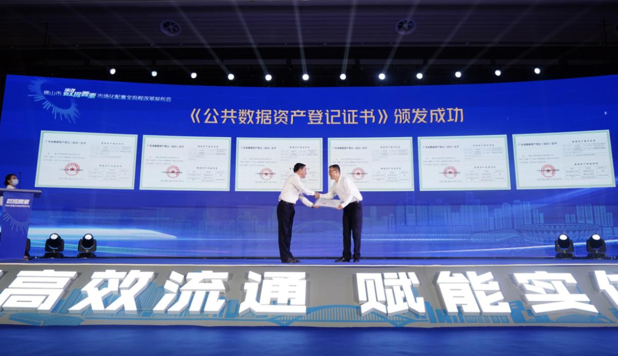 8月9日,佛山数据要素市场化配置全流程改革发布会。会上,为顺科智汇公司颁发全省首批《公共数据资产登记证书》
