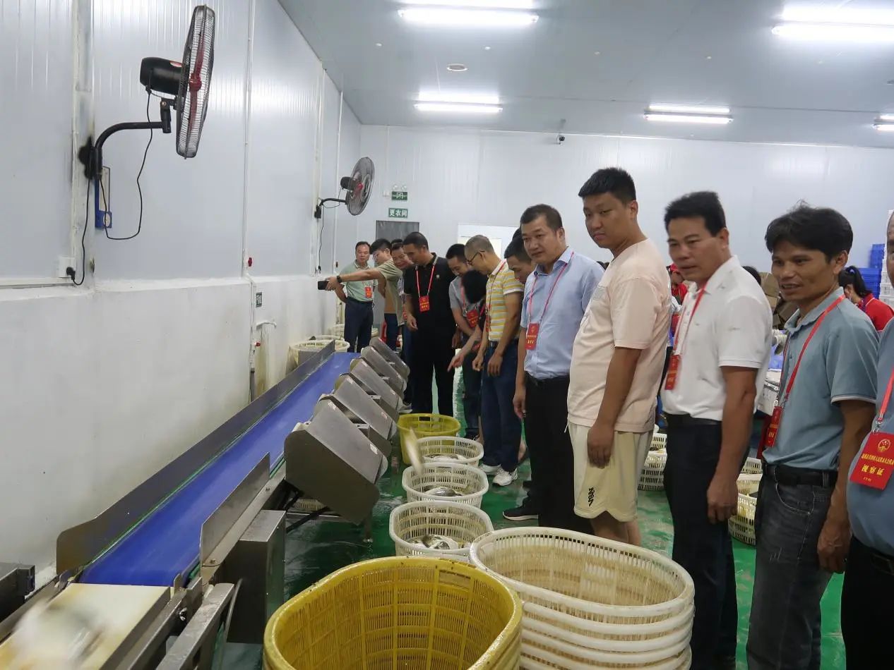 调研组一行来到湛江汇富海洋科技有限公司实地察看金鲳鱼加工流程,详细听取相关负责人关于企业生产经营、水产品加工、市场营销、产业链发展等情况汇报,并就发展过程中遇到的困难和问题提出意见建议。 据了解,为推动金鲳鱼深加工产业发展,湛江汇富海洋科技有限公司不断完善生产配套设施,积极开发金鲳鱼等系列预制菜,投资建设烘干生产线3条,冷藏库一座,投资230万元建设深加工天然晒场1000平方米。建造销售实体店800平方米,同时自建网络平台,实现线上线下一体化销售。依托农产品深加工,湛江汇富海洋科技有限公司带动880户农民从事深海网箱养殖金鲳鱼产业,金鲳鱼养殖规模500万斤,年产值约1亿元,不仅有力的促进了农民就业和收入增长,还为草潭乡村振兴和经济高质量发展注入了新活力。