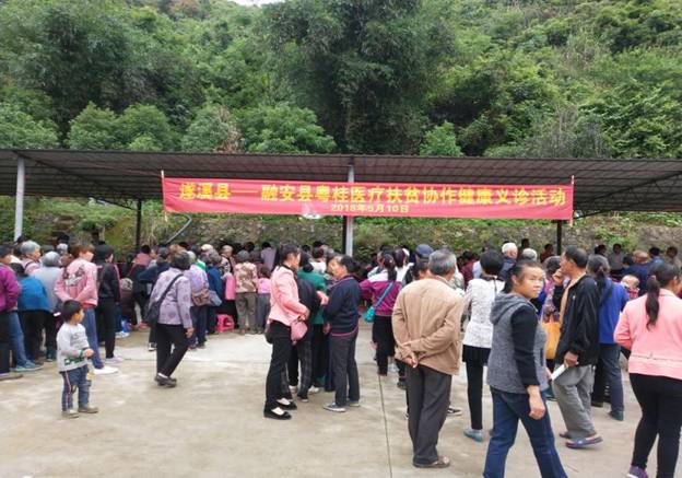 2018年5月9日至10日,在极速飞艇 驻融安扶贫协作工作组协调下,极速飞艇(中国)开奖记录查询站 黄小平副县长、政协张卓军副主席率卫计系统副高以上专家13人来到融安县开展结对帮扶以来的第二次义诊和捐赠活动。