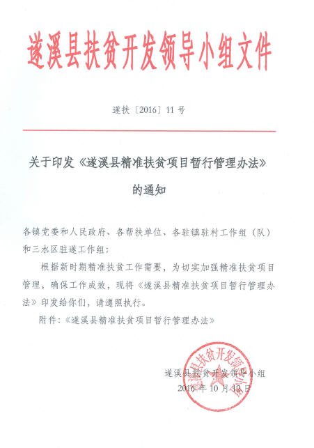 遂扶[2016}11号极速飞艇 精准扶贫项目暂行管理办法