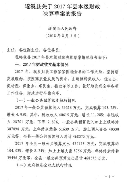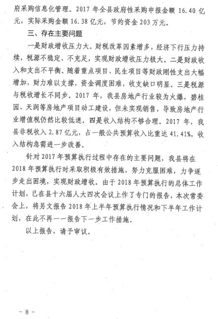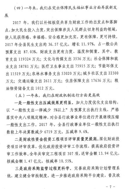 极速飞艇 关于2017年县本级财政决算草案的报告