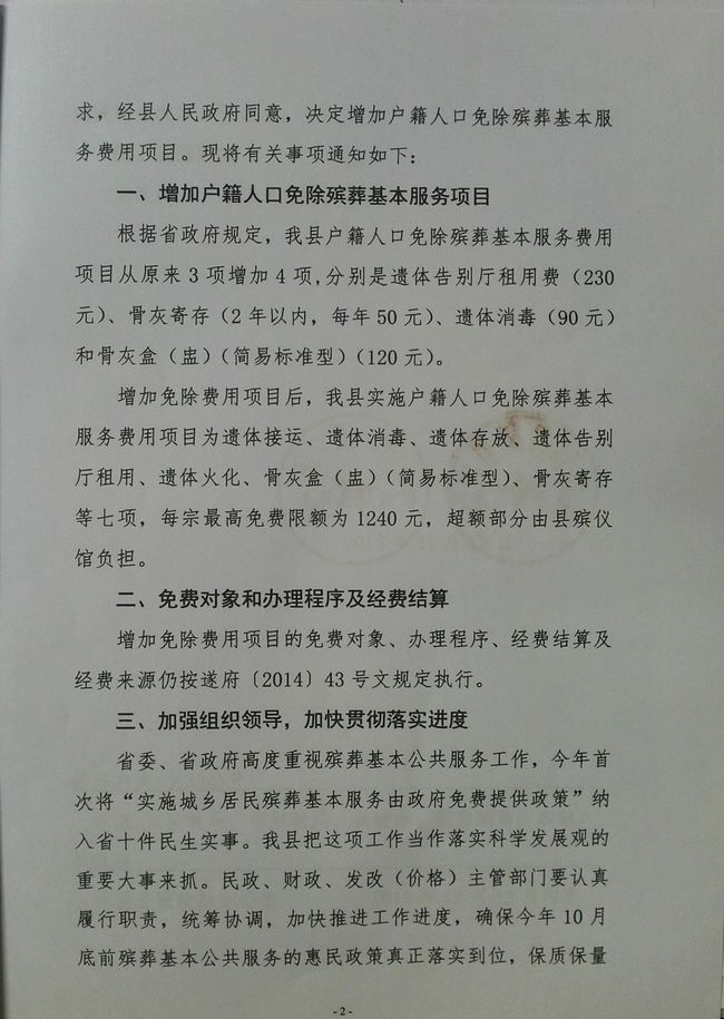关于增加免除户籍人口殡葬基本服务费用项目的通知
