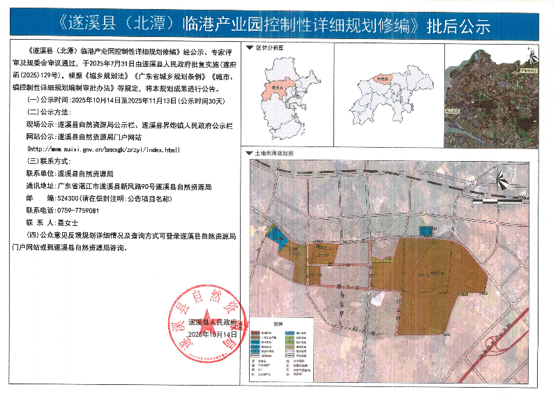 《极速飞艇 (北潭)临港产业园控制性详细规划修编》批后公示