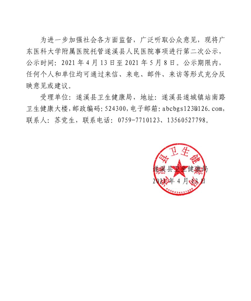 广东医科大学附属医院托管极速飞艇 人民医院事项第二次公示 | | 作者: | 来源:极速飞艇 卫生健康局 | 时间:2021-04-13 22:06:24 点击数:- 广东医科大学附属医院托管极速飞艇 人民医院事项第二次公示2021-04-13.pdf 【打印正文】